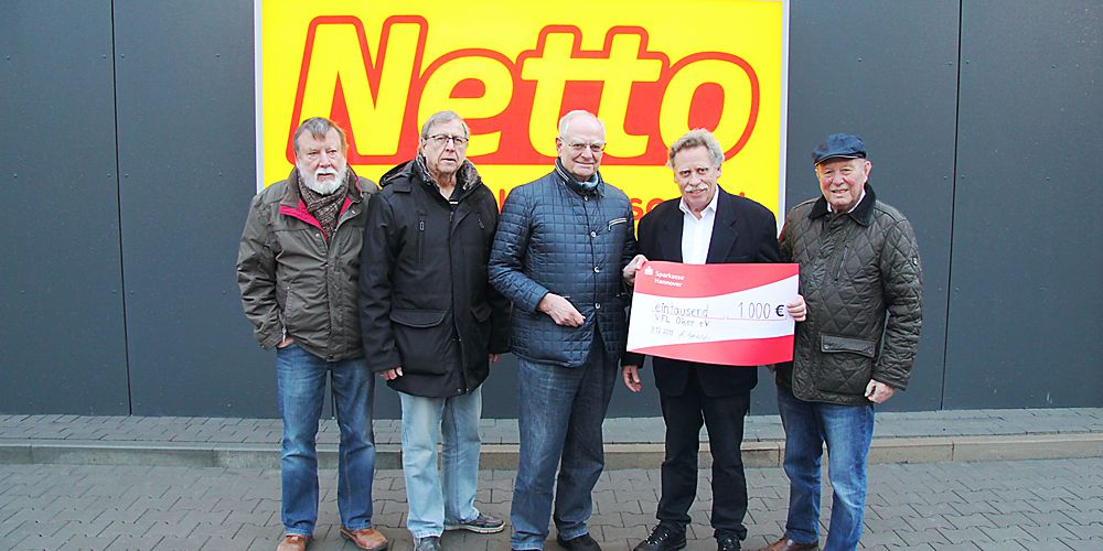 Der 1. Vorsitzende des VfL Oker, Dr. Jürgen Lauterbach, Kassenwart Eberhard Wellner und Ehrenmitglied Gerd Politz nahmen die Spende entgegen. 500 Euro stammen vom Vermarkter des Grundstückes, Immobilien Wolfgang Rosin aus Goslar. 1000 Euro spendete der Investor des neuen Netto-Marktes an der Harzburger Straße, der Geschäftsführer des Diplom-Ingenieurbüros für Bauplanung Günter Rahlfs aus Neustadt am Rübenberge.