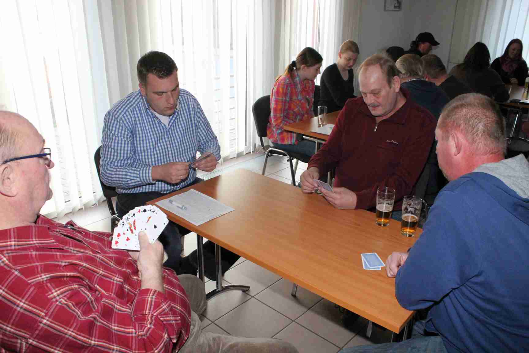 Insgesamt sieben Tische waren besetzt um Skat, Rommé oder „Mensch ärgere Dich nicht“ zu spielen. Vor Spielbeginn werden die Teilnehmer den Tischen zugelost, eine Person übernimmt das Schriftliche und hält alle Ergebnisse fest. Beim Skat wurde nach deutscher Skatordnung gespielt, hier hatte Karl-Heinz Künne die besten Karten, gefolgt von Wolfgang Liebelt und Petra Krämer. Beim Rommespiel gewann Michael Rother vor Anita Böhlke und Steffi Rother. Beim „Mensch ärgere Dich nicht“ war Hermine Gliemer die Gewinnerin, es folgten Franziska Beims vor Stefan Rother. Alle Teilnehmer mussten ein Startgeld von zehn Euro bezahlen, Kinder waren frei. Dafür erhielt jeder einen der von der Schladener Geschäftswelt gespendeten Preise. Auch das leibliche Wohl kam nicht zu kurz, im Anschluss gab es ein deftiges Essen.
