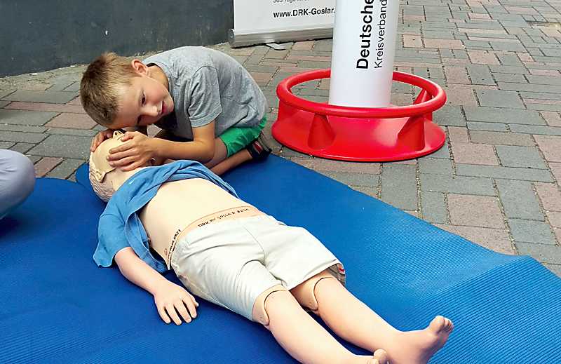 Ein junger Besucher übt die Herz-Lungen-Wiederbelebung – Foto: Dirk Noll