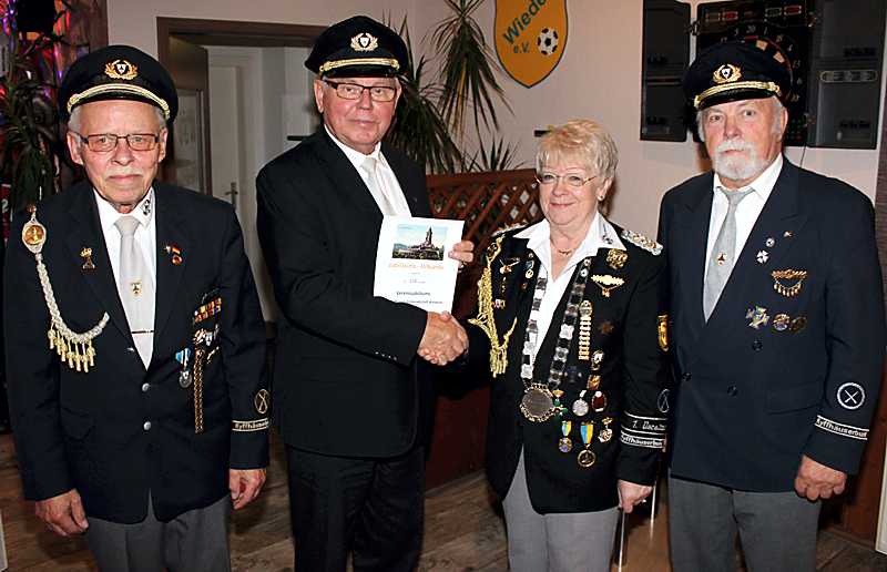 Heinz Ganz, der Präsident des Kyffhäuserbundes, Reinhard Groß vom Landesverband sowie der Kreisvorsitzende Karl-Hermann Falkenberg, überreichten der 1. Vorsitzenden Brunhilde Keune die Urkunde des Kyffhäuser – Bundesverbandes. Die Grußworte vom Kreisverband überbrachte der Vorsitzende Karl-Hermann Falkenberg aus Bodenstein.