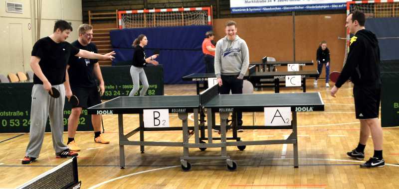 Viele dieser Anhänger schwangen im Vorfeld noch selber die Schläger, denn der SV Hahndorf richtet seine 4. Hahndorfer Rundlaufmeisterschaft im Tischtennis aus. Zahlreiche „Neulinge“ gaben ihr Bestes und hatten viel Spaß in geselliger Runde. Hier konnte sich Julian Gatzke knapp vor Hendrik Klauenberg und Hagen Wittig durchsetzen und den Wanderpokal entgegen nehmen.