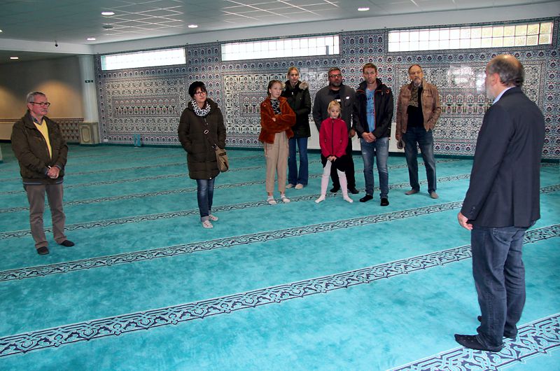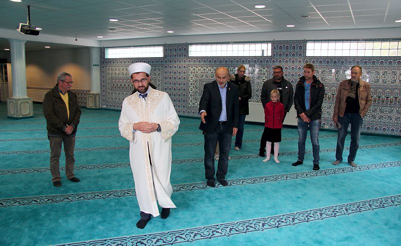 Der 1. Vorsitzende Tuncay Girgin erklärte den Besuchern die Moschee. Vor dem Eingang war die Zeittafel zu sehen – zu welcher Zeit die Gebete zu verrichten sind. Beginn des Morgengebetes (5.23 Uhr), Frühgebet (6.49 Uhr), Mittagsgebet (13.14 Uhr), Nachmittagsgebet (16.13 Uhr), Abendgebet (18.56 Uhr) und Finsternis (20.23 Uhr).