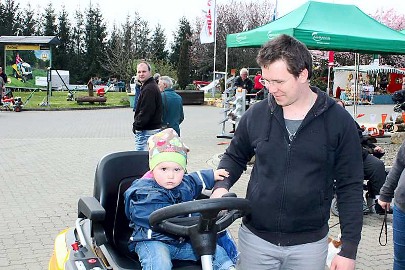 Besonders am Sonntag war die Firma für junge Familien das Ziel im Gewerbegebiet. Für die Kleinsten gab es ein großes Angebot, von der Hüpfburg, über Kinderschminken, Malen und Basteln. Es konnte der Führerschein auf einem Rasenmäher-Trecker erworben werden. Auf dem Außengelände konnten die Besucher die ausgestellten Rasenmäher selbst Probefahren. Beim Stihl-Testtag war es möglich die Kettensägen, Freischneider, Motorsägen und die neuste Akku-Technik selbst zu testen. Beim Thema „Holz“ wurden viele hydraulische Holzspalter angeboten, außerdem wurden Äste geschreddert, diese können für die Beetabdeckung oder für die Heizung verwendet werden. Bei einer Fend Schlepper Ausstellung wurden zehn Trecker angeboten, der größte Kollos hat sagenhafte 390 PS unter der Haube. Gewaltige Feldspritzen, mit 5000 Liter Wasserinhalt, die hydraulisch auf 27 Meter ausgefahren werden kann, waren ein gewaltiger Anblick.