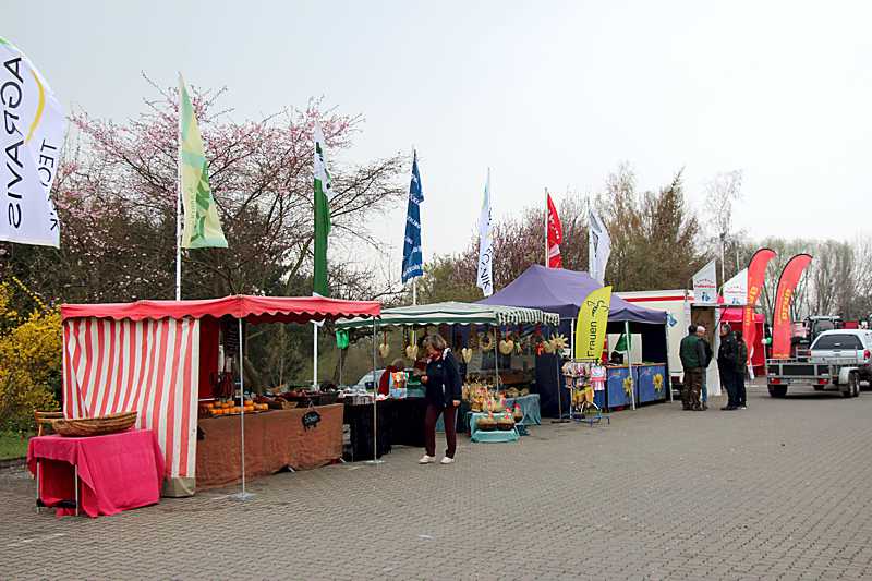 Auf dem Außengelände wurde die neuste Landtechnik ausgestellt, vom Hochgrasaufsitzrasenmäher über den gigantischen Mähdrescher bis hin zum kleinen Traktor war alles dabei. Nicht nur die neue Technik konnte man unter Augenschein nehmen, auch die Guten Alten wurden dank der Lanz-Bulldogfreunde ausgestellt. So konnte man in einen direkten Vergleich schnell sehen, was sich in 70 Jahren getan hat.