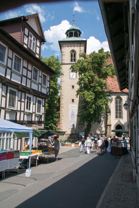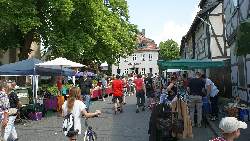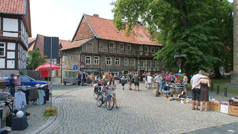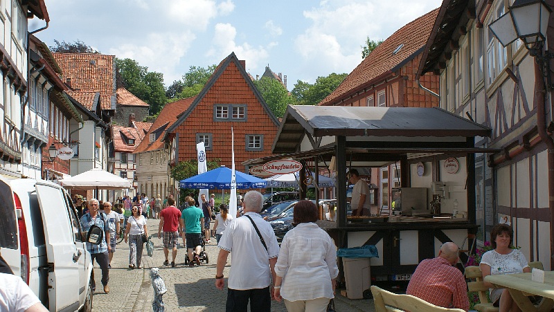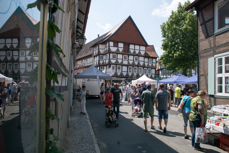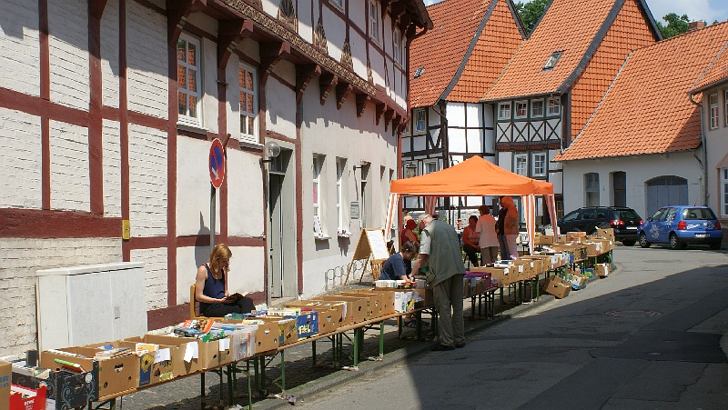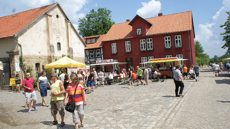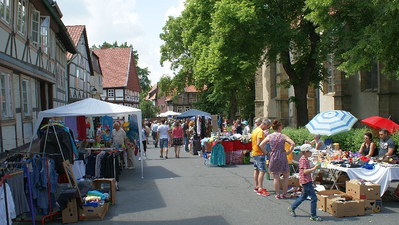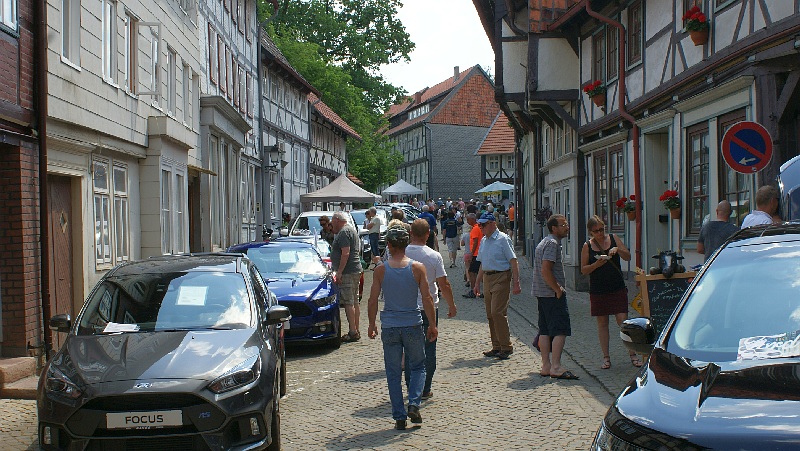 Bei strahlendem Sonnenschein waren zahlreichen Besucher aus Nah und Fern nach Hornburg angereist. Die locker aufeinander folgenden Flohmarktstände sowie die zahlreichen Angebote der integrierten „Futtermeile“ fanden reichlich Anklang. Wer vom Rathaus aus den Weg durch die Altstadt zur Burg nahm, konnte sich nebenbei auch noch die neuesten Modelle der teilnehmenden Autohäuser aus der Nähe ansehen. „Altes Blech“ gab es oben auf dem Schlossberg und wer bis dorthin kam, konnte sich mit Kaffee und Kuchen bei den Landfrauen den Tag weiter versüßen. Hier gab es auch reichlich schattige Sitzplätze.