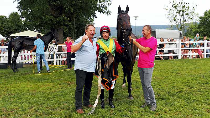 Beim zweiten Seejagdrennen am letzten Sonntag Preis der Bauwirtschaft – Bad Harzburger Seekönig siegte der achtjährige Wallach Wutzelmann. Im Sattel saß Jockey Martin Cagan.