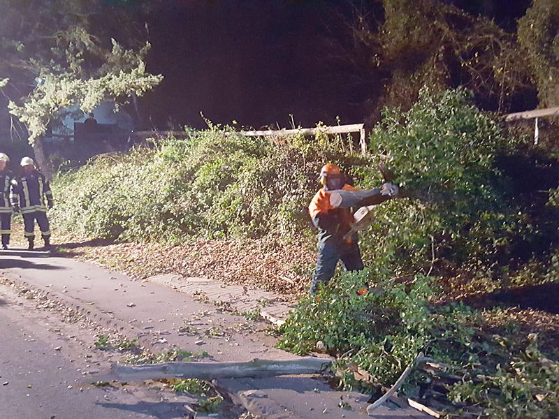 Dieser blockierte den Triftweg, durchbrach ein Holzgeländer und ragte bis auf die Schladener Straße herunter. Ein vorbeifahrender Pkw wurde von dem abgeknickten Baum gestriffen, wobei ein Außenspiegel und ein Teil der Windschutzscheibe beschädigt wurden. Die junge Fahrerin blieb zum Glück unverletzt. Der Baum wurde durch die Feuerwehrkräfte zerkleinert und beiseite geräumt.