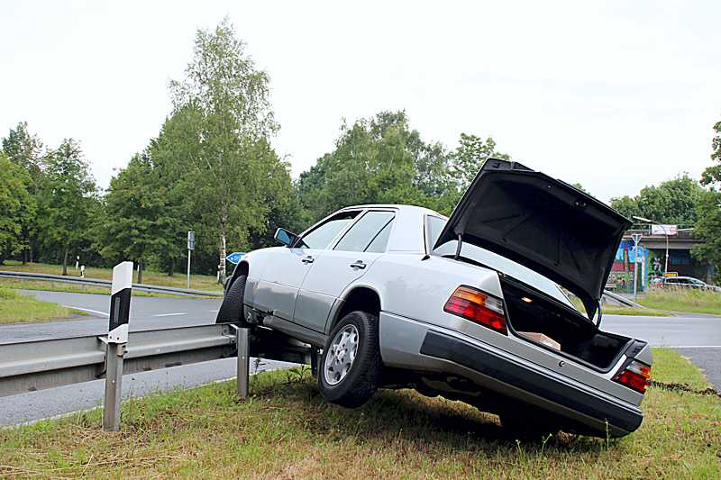 Viel Aufmerksamkeit von vorbeifahrenden Autofahrern erhielt am Freitagmorgen gegen 7.15 Uhr ein Unfall-Fahrzeug. Wie konnte der PKW auf die Leitplanke kommen?