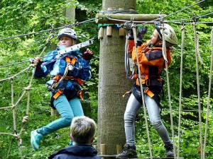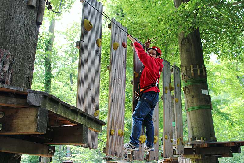 Viele der Jungen und Mädchen trauten sich sogar die schwierigen Klettertouren zu. Einige aber kostete es durchaus Überwindung, in der Höhe die einzelnen Hindernisse zu bewältigen. Besonders viel Spaß bereiteten ihnen die Seilrutschen. Alle Teilnehmer waren mit Freude und Begeisterung dabei und zeigten viel Mut und Zutrauen in die eigene Leistungsfähigkeit. Sie erkannten, dass Teamwork beim Klettern unerlässlich ist und halfen und unterstützten sich gegenseitig, wann immer es nötig war. Aufgrund der positiven Erfahrung waren sich alle einig: eine Wiederholung im nächsten Schuljahr wäre eine große Freude.