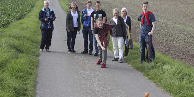 Start war am Zollweg, wo es gleich nach 600 Metern den steilen Weg vom Schützenhaus, der aber ohne Boßeln zu bewältigen war. Auf halber Strecke, war eine kurze Pause angesagt, Martin Gottwald und Georg Nalborczyk stand mit seinen Erfrischungsgetränken in der Feldmark. Über die Alte Heerstraße ging es weiter durch den Wolterberg, entlang der Kläranlage, zum Ziel bei Erwin Knoop in der Weidenstraße.
