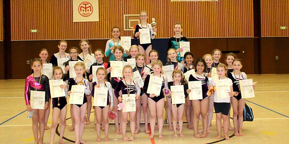 Erfreulicherweise starteten 27 Turnerinnen im Alter zwischen 5 und 14 Jahren. Wie immer mussten die Turis einen 4 Geräte-Wettkampf aus den Pflichtstufen absolvieren. Die Vereinsmeisterschaften im Kunstturnen konnten zügig durchgeführt werden, dank der Diszipliniertheit jeder einzelnen Turnerin und dem guten Kampfgericht ehemaliger Turnerinnen. An dieser Stelle ein ganz, ganz großes Dankeschön.