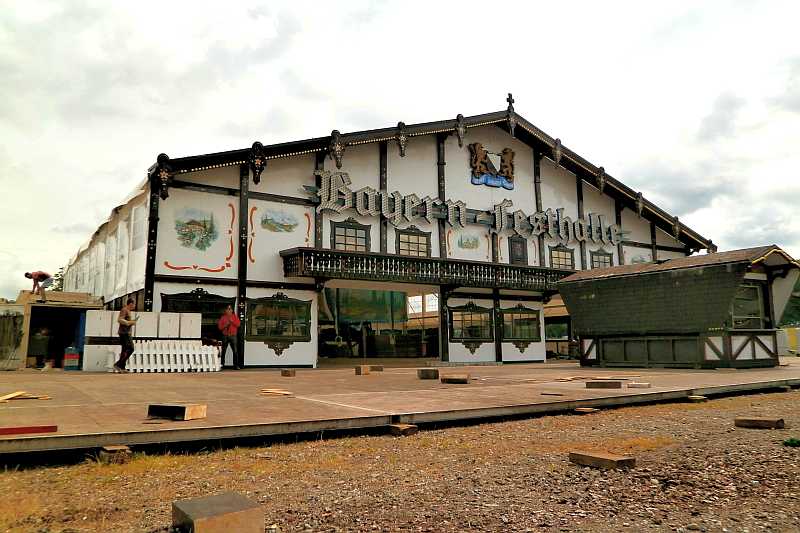 Die Bayern-Festhalle und verschiedene Fahrgeschäfte sind bereits auf dem Osterfeld eingetroffen und werden aufgebaut.