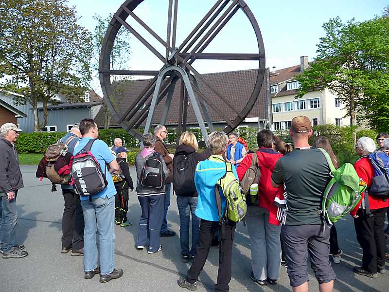 Anschließend führte die 17 Kilometer lange Wanderung rund um Clausthal und Buntenbock die Gruppe zu 8 Bergwerken, 14 Teichen und 20 Wasserläufen und Gräben. Und damit haben alle einen kleinen Einblick in das UNESCO-Weltkulturerbe Oberharzer Wasserregal erfahren. Zu guter Letzt ging es nochmals über 210 Treppenstufen in die Tiefe der Rosenhöfer Radstube. Dort bedankte sich Günter im Namen des SC Hornburg ganz herzlich bei unserem ausgezeichneten Oberharzer Wanderführer Lothar. Er hatte eine sehr schöne Strecke für uns ausgearbeitet.
