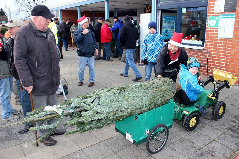 Bereits vor der Öffnungszeit warteten viele Kunden auf den Einlass. Kaum wurde das Tor geöffnet strömten die Besucher auf das Gelände in den „Tannenwald“. Wer seinen Baum gefunden hatte, konnte sich dann stärken. Bratwurst, Schmalz- und Käsebrote, sowie Glühwein und Kakao, mit oder ohne „Geschmacksverstärker“ fanden ebenso Ihren Abnehmer, wie Kaffee und Kekse, sowie Früchte aus dem Schokobrunnen. Auch Kaltgetränke waren im Angebot.