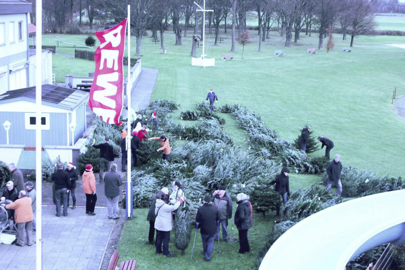 5,00 € brachte jeder verkaufte Baum in die Kasse des Fördervereins und dient somit dem Erhalt des Freibades. Cirka 340 Bäume waren im ersten Anlauf geordert. Sicherheitshalber wurde am zweiten Verkaufstag nochmal eine Palette Bäume nachgeliefert, so dass sich die Auswahl an beiden Tagen auf rund 370 Nadelhölzer belief. Trotz des schlechten Wetters kamen viele Käufer und trotzten dem starken Sturm, der die Baumauswahl nicht gerade einfach gestaltete. Seitens des Fördervereins stellte man den Interessenten einige „Baumberater“ zur Seite. Bei älteren Käufern wurde auch beim Abtransport des Nadelbaums geholfen.