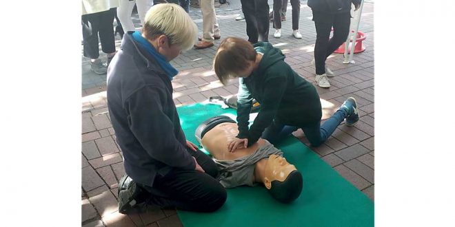 Zum Welttag der Ersten Hilfe machte sich der Kreisverband Goslar des Deutschen Roten Kreuzes (DRK) für bessere Ersthelfer-Kenntnisse in der Bevölkerung stark. Das DRK Goslar präsentierte das Thema Erste-Hilfe und weitere Angebote des Kreisverbandes vor der ehemaligen Realschule Hoher Weg in Goslar. Unter Beteiligung des Jugendrotkreuzes (JRK) zeigten Erste-Hilfe-Ausbilder Handgriffe zur Ersten Hilfe. So konnte die stabile Seitenlage und die Herz-Lungen-Wiederbelebung praktisch unter Anleitung der Ausbilder durchgeführt werden. Aber auch für alle anderen Fragen, wie zum Beispiel die „Bildung einer Rettungsgasse“ und der Verkehrsunfallabsicherung standen die ehrenamtlichen Ausbilder des DRK parat. Das Jugendrotkreuz bot für Kinder das Bemalen von Stofftaschen an und aus Pappe konnte ein Rettungswagen gebastelt werden. Auch einfache Verbände und das richtige Absetzen eines Notrufs wurden vor Ort geübt.
