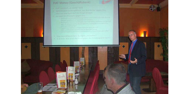 Am 28. Mai gegen 19:00 Uhr trafen sich im Restaurant “Die Butterhanne” auf Einladung des Ortsverbandes GOSLAR interessierte Bürger und Mitglieder des Kreisverbandes der AfD zu dem Themenabend “Wie entsteht Geld?”. Herr Jörn König als Mitglied des Vorstandes des Landesverbandes Niedersachsen, hatte sich bereit erklärt, einen Vortrag zu diesem Thema zu halten. Nach einer kurzen Begrüßung durch den Vorsitzendes des Ortsverbands GOSLAR, Herrn Hans-Günter König, erhielt Herr Uli Bormann die Möglichkeit den neu gegründete AfD Stadtverband Bad Harzburg vorzustellen. Seinen etwa einstündigen Vortrag begann Herr Jörn König mit einem Exkurs zur Geschichte des Geldes. Geschichtlich nicht ganz sicher gelten die Phönizier als “Erfinder” des Geldes. “Die Phönizier haben das Geld erfunden – aber warum so wenig?” (Aphorismus von Johann Nepomuk Nestroy (1801 – 1862, österreichischer Dramatiker, Schauspieler und Bühnenautor) zum Thema Geld)