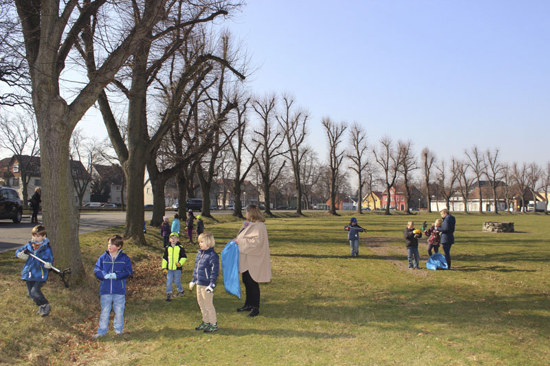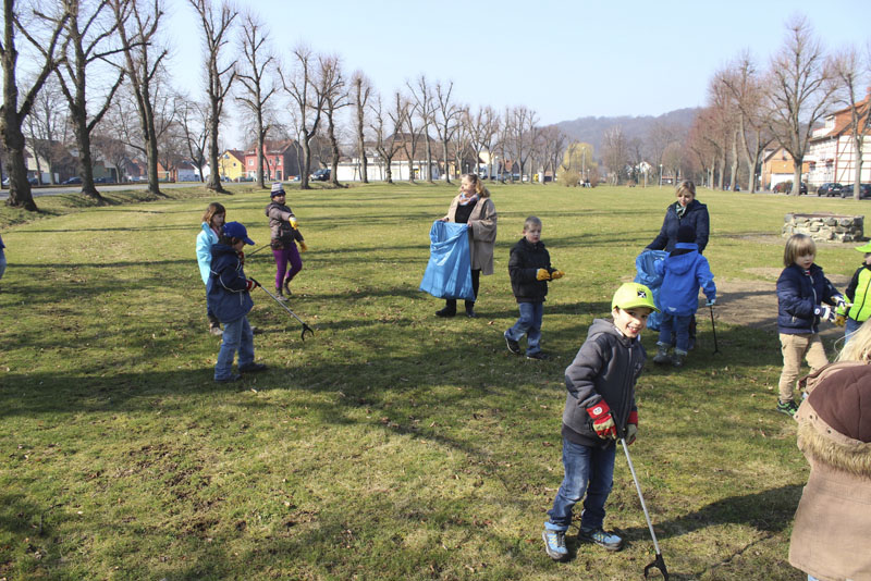 Bei herrlichem Sonnenschein sammelte die Grundschule Wiedelah, mit ihren 65 Schülern und Lehrern sowie Ortsvorsteher Hans-Joachim Michaelis auf den beiden Marktplätzen, An der Ecker in der Wülperoder Straße und rund um den Friedhof, jede Menge herumliegenden Abfall.