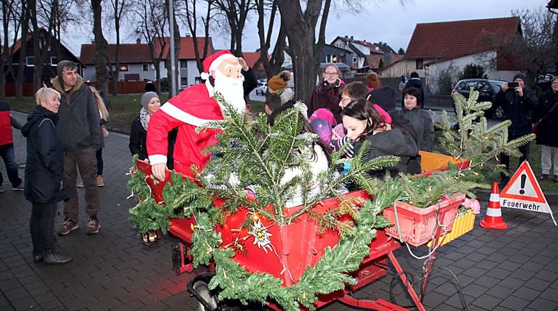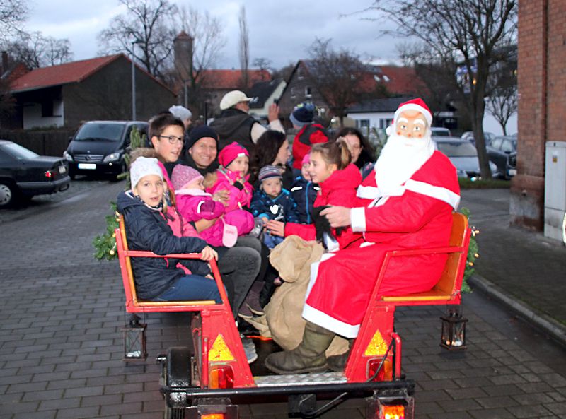 Am späten Nachmittag kam auch der Weihnachtsmann, er hatte auf dem Anhänger eines Lanz, Baujahr 1956 mit 12 PS, Platz genommen. Der Besitzer des historischen Treckers, Benno Zadlovski, unternahm mit den Kindern den ganzen Tag Rundfahrten durch das Dorf.