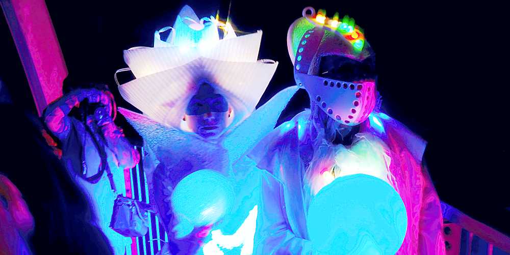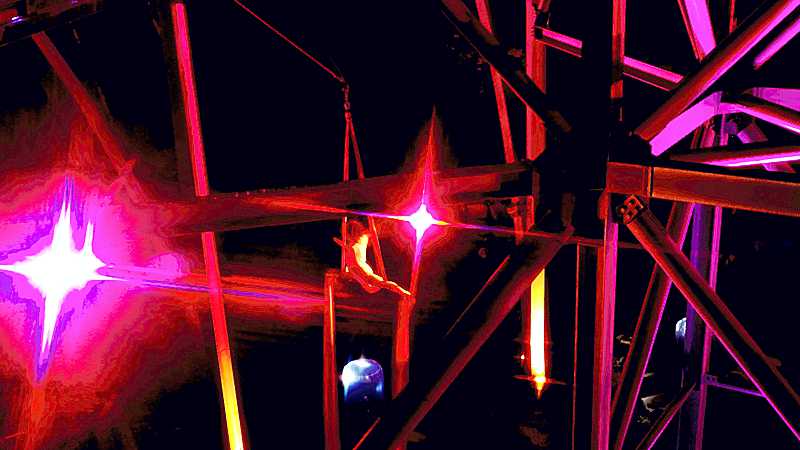 Wie im vergangenen Jahr, hat Tuchkünstlerin Christina Wintz in der bunt leuchtenden Krone bei aufsteigendem Nebel und entsprechender Musik mit einer Tuchakrobatik in schwindelnder Höhe für atemlose Augenblicke gesorgt. Außerdem wandelten zwei illuminierte Lichtgestalten der „Fenix Theatre Company“ aus Hannover auf dem Pfad der Krone zu den illuminierten Wipfeln.