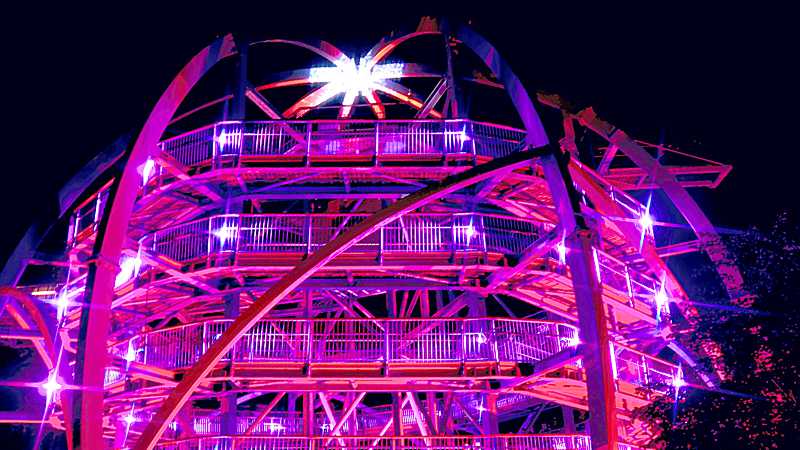 Als besonderes Highlight warteten Eva-Christin Ronkainen-Kolb und Holger Kolb als Betreiber des Baumwipfelpfades in diesem Jahr mit einer fünfminütigen Licht- und Soundchoreografie der Lichtexperten „Hell und Dunkel“ aus Braunlage auf, die alle 30 Minuten in der Krone dargeboten wurde.