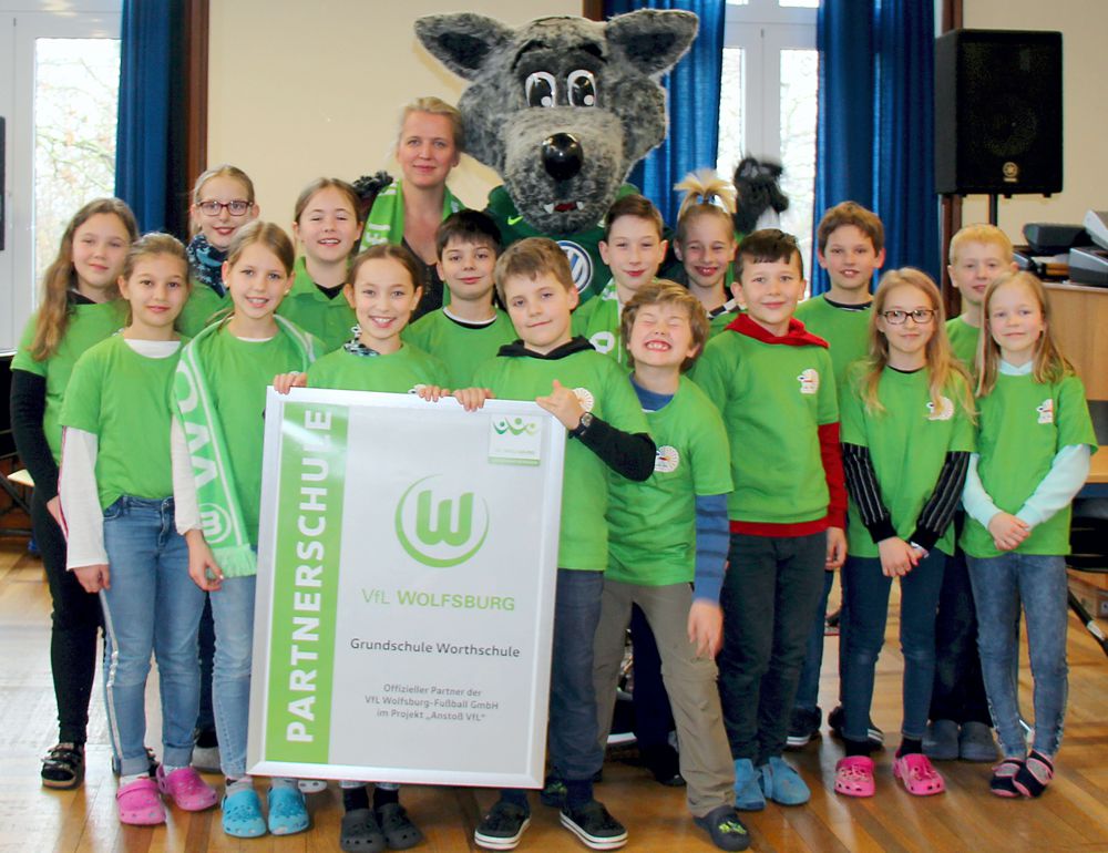 Die Partnerschaft beinhaltet mehrere Besuche von Wölfi im Jahr, Freikarten für Fußballspiele in der Wolfsburger VW-Arena, ein Besuch des interaktiven Busses in Goslar auf dem Schulhof und Vieles mehr. Die Partnerschaft entstand durch einen Gewinn der Klasse 4a, die mit ihrer Klassenlehrerin Britta Busse bei einem Schreibwettbewerb den ersten Platz belegte.