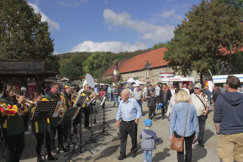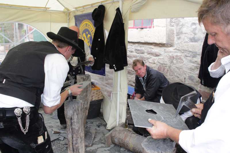 Es gab keinen Regen und die Besucher strömten auf das Klostergut. Beim musikalischen Frühschoppen spielte der Fanfarenzug Immenrode und am Nachmittag gab es Blasmusik des Musikzuges der Freiwilligen Feuerwehr Rhüden. Anziehungspunkt war der Schmiedeclub aus dem Westerwald, hier gab es Vorführungen, wie bei 800 Grad der Zinken einer Baggerschaufel erhitzt wurde und dann mit dem Hammer behandelt wurde. Sehenswert war der „Schmiedewagen“, wie der Schmied vor etwa 50 Jahren von Hof zu Hof zum Hufbeschlag gefahren ist. Holzsägen hieß es bei Paul Knoblich, er hat eine über 50 Jahre alte Tischlereimaschine zu einer Bandsäge umgebaut und mit einer Handkurbel setzt er die Maschine in Betrieb. Das ehrbare Schieferhandwerk aus verschiedenen Goslarer Dachdeckerfirmen stellte verschiedene Motive aus Schiefer her.