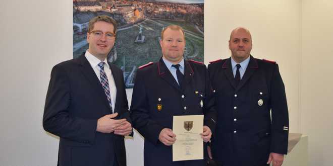 Brandmeister Wolfram Traeger wurde am 25.2.2016 als Ehrenbeamter mit Wirkung vom 1. März 2016 zum stellvertretenden Ortsbrandmeister der Ortsfeuerwehr Vienenburg ernannt. Oberbürgermeister Dr. Oliver Junk händigte ihm im Beisein vom stellvertretenden Stadtbrandmeister Jürgen Koch die entsprechende Ernennungsurkunde aus.