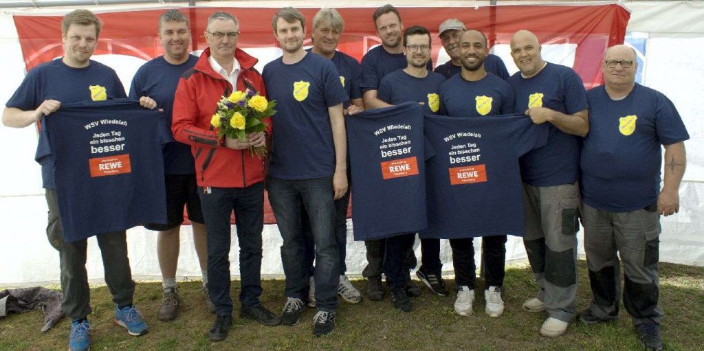Zu seinem 40-jährigen Jubiläum erhielt der WSV Wiedelah 100 T-Shirts vom REWE-Markt in Vienenburg.