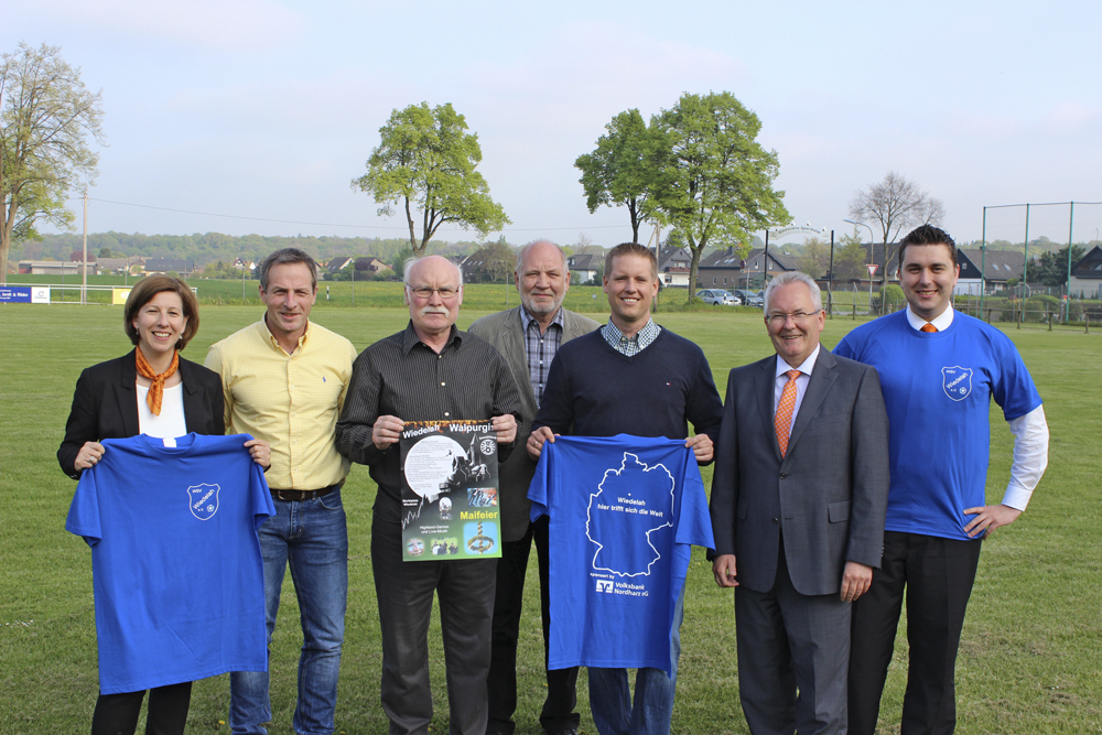 Gleichzeitig feiert der Verein an beiden Tagen sein 35-jähriges Jubiläum. Für alle Helfer der Feier hatte Hans-Peter Reichelt vom Vorstand der Volksbank Nordharz, auch noch T-Shirts mit in das Wiedelaher Sportheim gebracht. „Soviel ehrenamtliches Engagement unterstützen wir gern, denn die Volksbank ist daran interessiert, dass die Vereinslandschaft und das Dorfleben in Wiedelah lebendig bleiben“, so Hans-Dieter Reichelt. Auch Franz-Josef Knak von der Dorfgemeinschaft zeigte sich erfreut, dass der WSV die Maifeier ausrichtet und hofft, dass diese Feier auch in den kommenden Jahren auf dem historischen Marktplatz stattfindet.