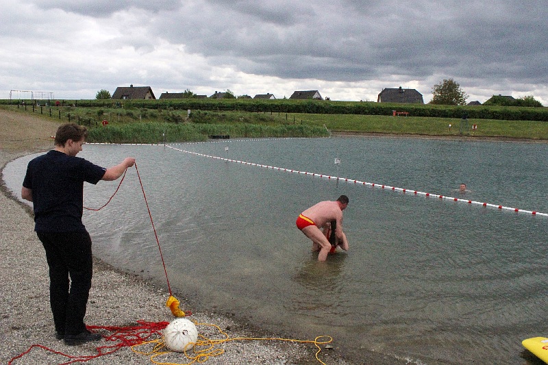 Neben einer Nachtwanderung und Grillen am Lagerfeuer absolvierten sieben Jugendliche die Ausbildung zum Rettungsschwimmer in Gold. Die beiden Ausbilder, Ingo Ahrens und Olaf Grüne, nahmen die Prüfung am Rettungsball, -brett und -boje sowie an der Wurfleine im Wasser ab. Hier kam auch das neue Rettungsbrett zum Einsatz, das besonders bei Wirbelverletzungen gebraucht wird. Sobald die Jugendlichen das 18. Lebensjahr erreicht haben, können sie sich auch bei der Aufsicht im Freibad aktiv betätigen.